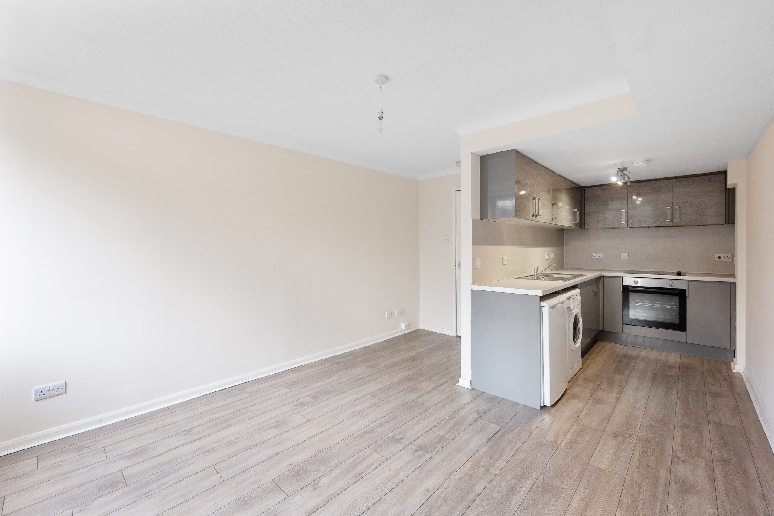 The lounge offers comfortable living and dining space and the windows allow plenty of natural light to fill the room. Situated just off of the lounge is the kitchen which hosts a range of floor and wall mounted fitted units and a selection of appliances including an oven, electric hob, fridge and washing machine.